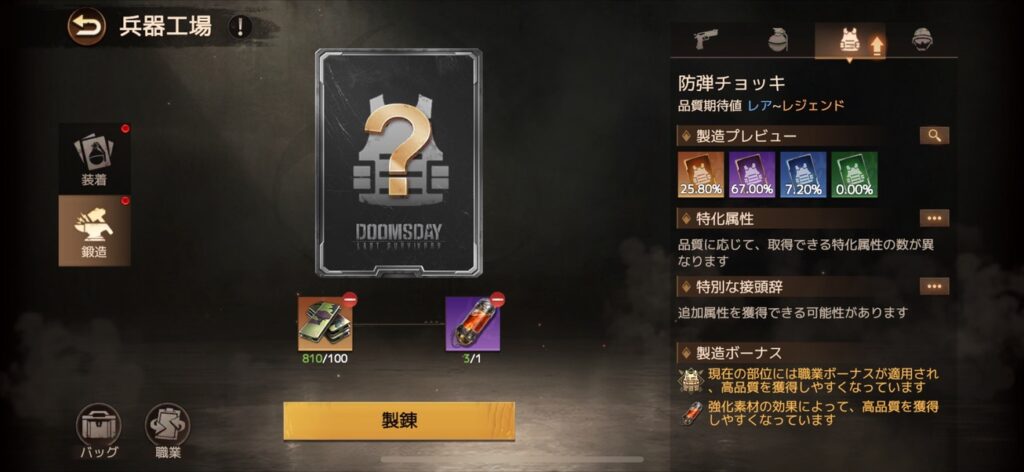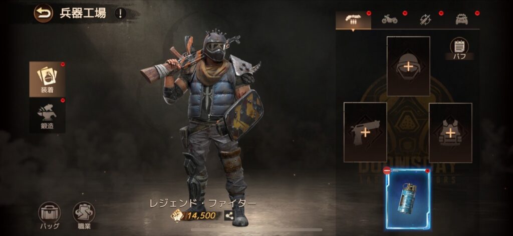 1.装備カテゴリ:銃火器/戦術武器/防弾チョッキ/マスク(兵士属性を強化します)