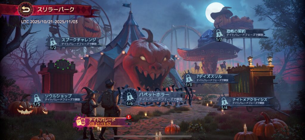 フェーズ4まで進むと「ナイトメアクライシス」が解放されますが、開催期間が10月24日〜11月1日となっています。フェーズ5以降で解放される「ソウルショップ」や「パペットホラー」なども10月24日からの開催になります。